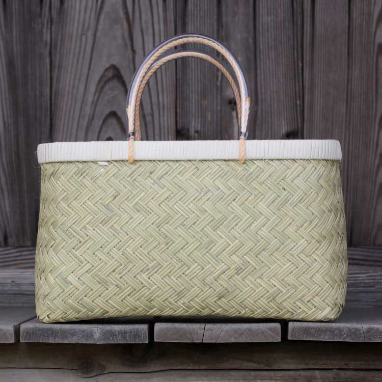 ホントに長い間にわたってご使用されるお客様や、プロの方には迷うことなくこちらのスズ竹(篠竹)の商品をオススメしております。東京の築地市場でお寿司屋の職人さんなどが買い出しされるのをテレビなどでごらんになった事はございませんか?手に持つ買い物かごは、ほぼ間違いなくこのスズ竹(篠竹)製の市場かご、本物を知る方にこそ愛されつづけている逸品なのです。いままで数知れず販売しておりますが、本体部分が破損したというお客様は一人もおられないというのが強さの証明です。