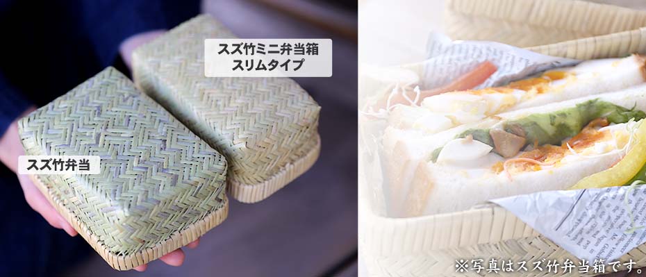 スズ竹の弁当箱は小さいながらも丈夫。中身が蒸れずに美味しくいただけるのも特徴のひとつ、飴色にかわってくるまでじっくり使い込みたいミニ弁当箱。