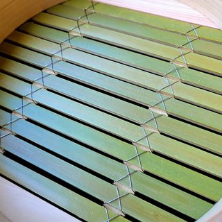 実は国産の蒸籠であっても、この竹材部分については国内製造できず、ほぼ輸入竹材が使用されています。前に竹虎にも底の簀や、蓋の網代編みができないだろうかと何度かお問い合わせいただいた事もあります。ご覧になられた皆様のご感想は、どうでしょうか?蓋の網代編みは、編み込む技術もあるし大変そうだけれど、底の簀は簡単な竹ひごだから製造できるのではないか...。そんな風に思われましたでしょうか。