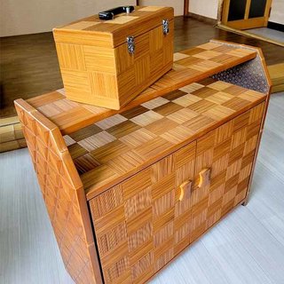 前にもご紹介しましたが、祖父の部屋に置かれていた竹ヒゴを使った調度品と化粧ケースをご覧いただいても、竹ヒゴの色合いが微妙に変化している過程がお分かりいただけるかと思います。