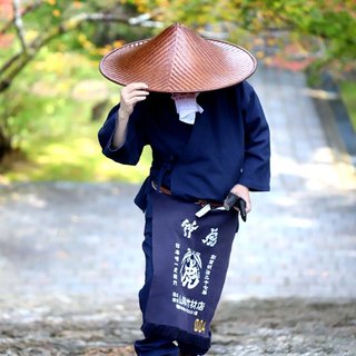 本来は柿渋のみの網代笠ですが、この復刻浪人笠では、まず天然柿渋を二回、さらに色目調整の柿渋を三回塗り重ねます。そして、この繊細な竹笠に強度と深い艶を与えるために漆をさらに三回塗り重ねるという、計八重の衣を纏わせた特別仕様です。型起こしから始まり、ヒゴ取り、編み込み、そして最後の仕上げに至るまで膨大な時間と職人の命が吹き込まれています。