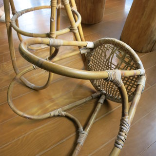 こんな家具で生活できれば、どんなに楽しいだろうか?そう思いながらボクが工房を訪ねた時には、既に古びた製品が遺されているばかりでしたが、一台の状態のよい肘掛け椅子を今回の会場の片隅に見つけた時には驚きました。この椅子の価値が分かる方は、そうそういません。もし、この家具の大量生産に成功していたら、もっともっと面白い竹の時代があっただろうと何度か夢想したことがあります。