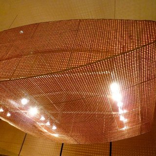 この磨きの竹四ツ目を多用されたのが素晴らしかったのです。納品された直後は、まだまだ真新しい竹の色合いを残しています。それが、時間の経過と共に飴色に変わり、色合いが深まっていくのです。ボク自身、色合いの美しさに見惚れて、写真を撮りたいと思ったのは、ホテルが完成してから何年も経ってからの事でした。
