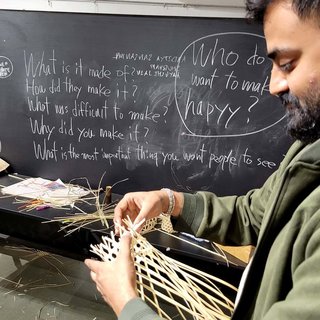 ただし、竹籠は編みあがった時が完成ではありません。使ってもらって、誰かの役に立った時に出来あがるものなんです。つまり、作り手と使い手で完成させるのが竹籠です。そして、そのようなモノは竹だけではなく、世の中に数多あるのではないでしょうか。皆さんがこれから生み出していく全ての、その先に人の笑顔が待っています。「Who do you want to make happy?」、黒板に書かせてもらった言葉を忘れないでいて欲しいと思っています。